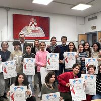 Se ha convertido ya en una tradición y este es el octavo año que así se hace, siendo ellos los encargados de realizar este trabajo en pro de los comercios de su ciudad. Los alumnos del taller de pintura juvenil de la Universidad Popular son los protagonistas un año más del cartel anunciador de la campaña `Alcalá Enamora´ con motivo del día de los enamorados y que organiza la federación de Industriales y Comerciantes (FICA) con la colaboración del Ayuntamiento y la Asociación de Hosteleros.