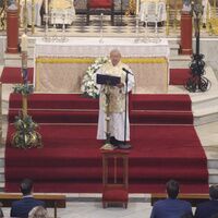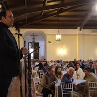 La celebración se ha realizado primero con una misa en la parroquia de Santiago, que ha resultado multitudinaria y a continuación un almuerzo de convivencia, en el que la alcaldesa, en nombre de Alcalá, le ha hecho entrega de un regalo, un cáliz como símbolo de amor y de lo que supone ofrecerse a los demás y compartir.