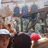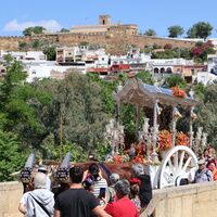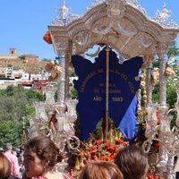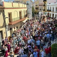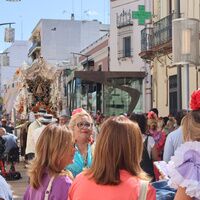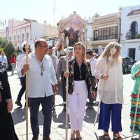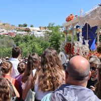Tras la misa de Romeros, la Hermandad ha recorrido las calles de la ciudad en su peregrinación a la Aldea almonteña, este año con la novedad de lucir en el Simpecado el escudo de la ciudad en plata, donado por el Ayuntamiento. La alcaldesa ha realizado la tradicional ofrenda floral y ha despedido al Simpecado en el Puente Jesús Nazareno