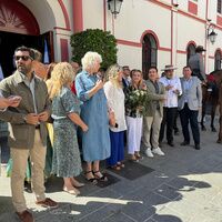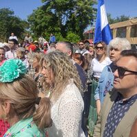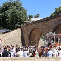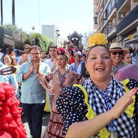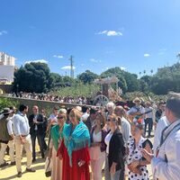 Junto a los romeros y a ritmo de sevillanas y palmas, tanto la alcaldesa como los concejales y miembros de la Corporación municipal han acompañado al Simpecado hasta cruzar el puente Jesús Nazareno con dirección a la zona del Torrondo junto al Puente del Dragón, punto destacado de parada para ésta y otras hermandades que ya marchan para Almonte.