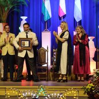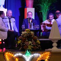 El pregonero protagonizó un momento muy especial, el más destacado en el que se unió a un grupo de amigos que lo acompañaban en el escenario para interpretar unas sevillanas dedicadas a Alcalá y a sus rincones de ensueño.