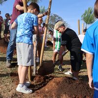 Niñas y niños  de 3º y 4º de primaria del colegio Federico García Lorca de Alcalá de Guadaíra han plantado hoy 10 ejemplares de pino piñonero en el parque público del mismo nombre contiguo al centro educativo. Se trata de una iniciativa del Grupo Martín Casillas que ha contado con la colaboración del Ayuntamiento de la ciudad y del centro educativo. La delegada de Medio Ambiente, María Luisa Campos, destaca el objetivo de esta actividad, “concienciar sobre la importancia de la preservación del medio ambiente y la sostenibilidad, empezando por los más pequeños que son el futuro”.