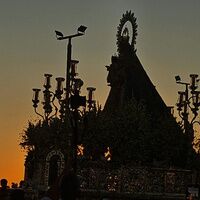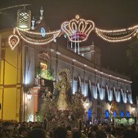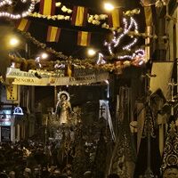 Con los últimos rayos de sol del día la Virgen iniciaba su salida procesional que la llevó desde su templo (20:45 h) hasta el centro de la ciudad, este año en su recorrido tradicional por las céntricas calles de la ciudad.