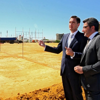 El Alcalde de Alcalá de Guadaíra, Antonio Gutiérrez Limones, junto al Director General de Makro, José María Cervera, han colocado hoy la primera piedra del nuevo centro de esta compañía, líder en distribución mayorista, que tiene previsto abrir sus puertas a finales de año y que posibilitará la creación de 100 empleos directos y 200 indirectos.