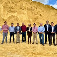 Las autoridades ha recorrido en el tren turístico las canteras de albero y han comprobado con las explicaciones de uno de los técnicos municipales de Turismo la singularidad de la explotación de esta mina única en el mundo.
