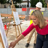 Con los planos expuestos, la alcaldesa ha podido comprobar cómo se llevará a cabo la intervención completa en las diferentes dependencias policiales, desde el aparcamiento, el edificio auxiliar y el edificio principal.