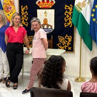 Acompañados por sus familias de acogidas, a las que la alcaldesa ha agradecido y reconocido su disposición solidaria, Ana Isabel Jiménez se ha dirigido a los menores dándole la bienvenida a la ciudad y expresando su deseo de que en estos días se lleven un recuerdo inolvidable de su estancia en Alcalá de Guadaíra.