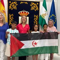 La alcaldesa de Alcalá de Guadaíra, Ana Isabel Jiménez, acompañada de la delegada de Servicios Sociales, Rocío Bastida, ha saludado a los niños y niñas saharauis que pasarán el verano en la ciudad llegados desde los campamentos de refugiados de Tindouf, en Argelia a través del programa “Vacaciones en Paz”, en una iniciativa que anualmente se pone en marcha por la Asociación Provincial de Sevilla de Amistad con el Pueblo Saharaui.