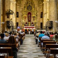 Acompañada del párroco de Santiago, Pedro Sola; el coadjutor, Manuel Ángel Cano; representantes de las hermandades, grupos y entidades que componen la feligresía y los responsables técnicos del proyecto, la alcaldesa ha mostrado su satisfacción al ver cómo el templo se ha iluminado y los 75 puntos de luz led instalados han resaltado los ricos elementos constructivos y artísticos del templo. “Sin duda que podemos admirar mejor los retablos, las bóvedas, los pilares y la magistral estructura de la iglesia. Es un paso a la altura de las dimensiones monumentales del edificio y su valor patrimonial”, indicó.
