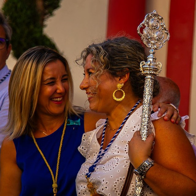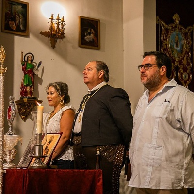 Durante estas semanas previas, la Hermandad se afana con los preparativos de limpieza de enseres, paso, carreta, altar, etc, la distribución de las pulseras conmemorativas, y los últimos detalles de los nuevos frontiles, obra del taller alcalareño de bordados Araújo Lunar.