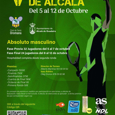 Se disputará en las instalaciones del Club de Tenis Oromana 5 al 12 de octubre. Este V torneo internacional de tenis IBP1500 Oromana-Ciudad de Alcalá, está patrocinado por el Ayuntamiento de Alcalá de Guadaíra, Distribuciones Juan Troncoso y Grupo Avisa