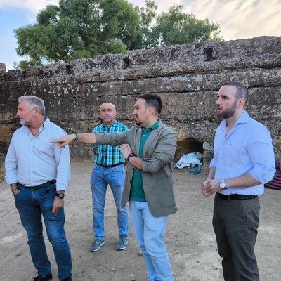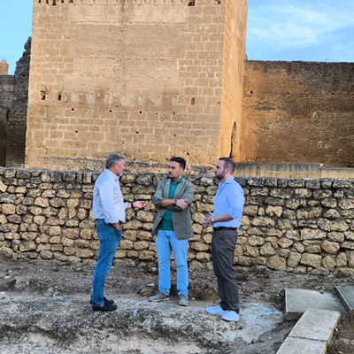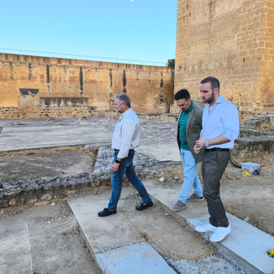 El Delegado de Cultura, Patrimonio y Turismo, Christopher Rivas, junto con el delegado de Hábitat Urbano, David Delgado, han comprobado el progreso de los trabajos de iluminación interior que realzarán un recinto fortificado único en Andalucía