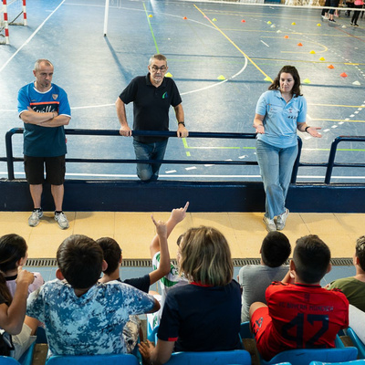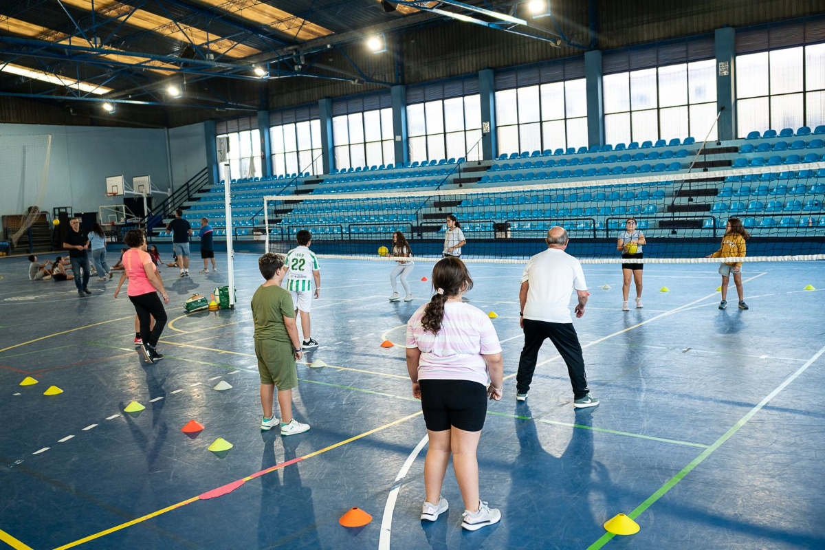 El Pabellón Plácido Fernández Viagas ha acogido la presentación y práctica de la actividad alternativa del voleibol convencional llamada Cachibol