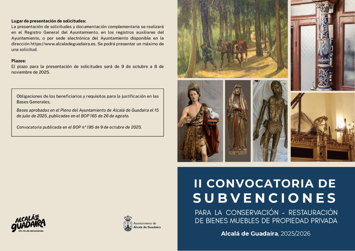 El Ayuntamiento de Alcalá de Guadaíra reafirma su “compromiso con la restauración del patrimonio artístico privado como símbolos identitarios de la ciudad porque no sólo restauramos arte, sino los vínculos de Alcalá con su historia”. Así lo ha expresado el delegado de Cultura, Patrimonio Histórico y Museos, y Turismo, Christopher Rivas, en la presentación de la segunda convocatoria de las subvenciones municipales para la restauración y conservación de bienes muebles privados de singularidad patrimonial, abierta hasta el próximo 8 de noviembre.