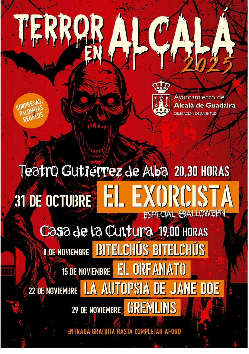 Además este año, Alcalá contará con la celebración de la fiesta del cine de Halloween y del terror. Una fiesta peculiar en la que se proyectarán películas acompañadas de sorpresas para el público. La programación recoge desde grandes clásicos del género, algún título reciente, terror español de gran nivel, películas con mucho miedo y alguna divertida para los pequeños aficionados al género.