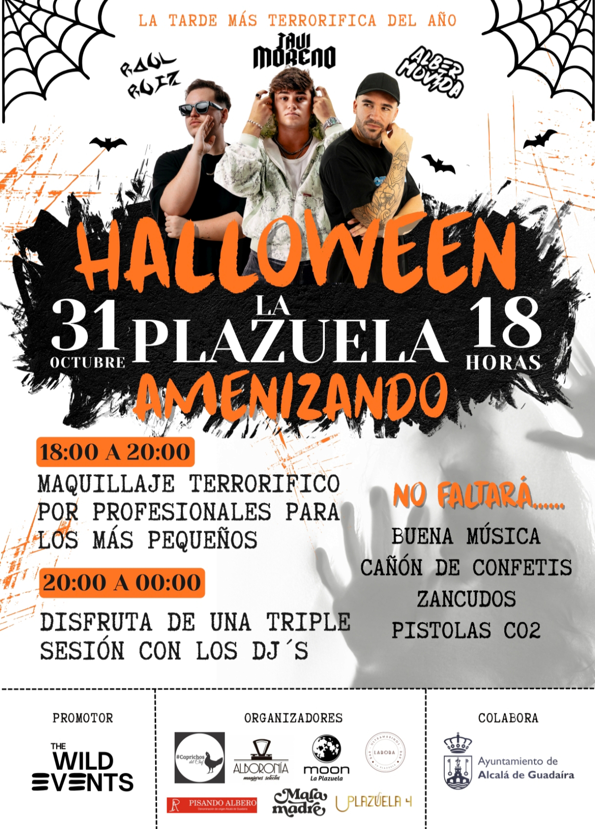 Para el mismo día 31 la tarde terrorífica también se trasladará a La Plazuela. Desde las 18 horas a las 20. 00horas, se realizarán talleres de maquillaje, y espectáculo de zancudos y cañón de confetis. La fiesta se extenderá hasta las 00.00 horas con la actuación de Djs como son Raúl Ruiz, Javi Moreno y Albert Movida.