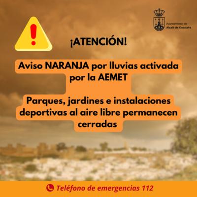 Alerta NARANJA el miércoles 29 - Cierre de parques municipales e instalaciones deportivas