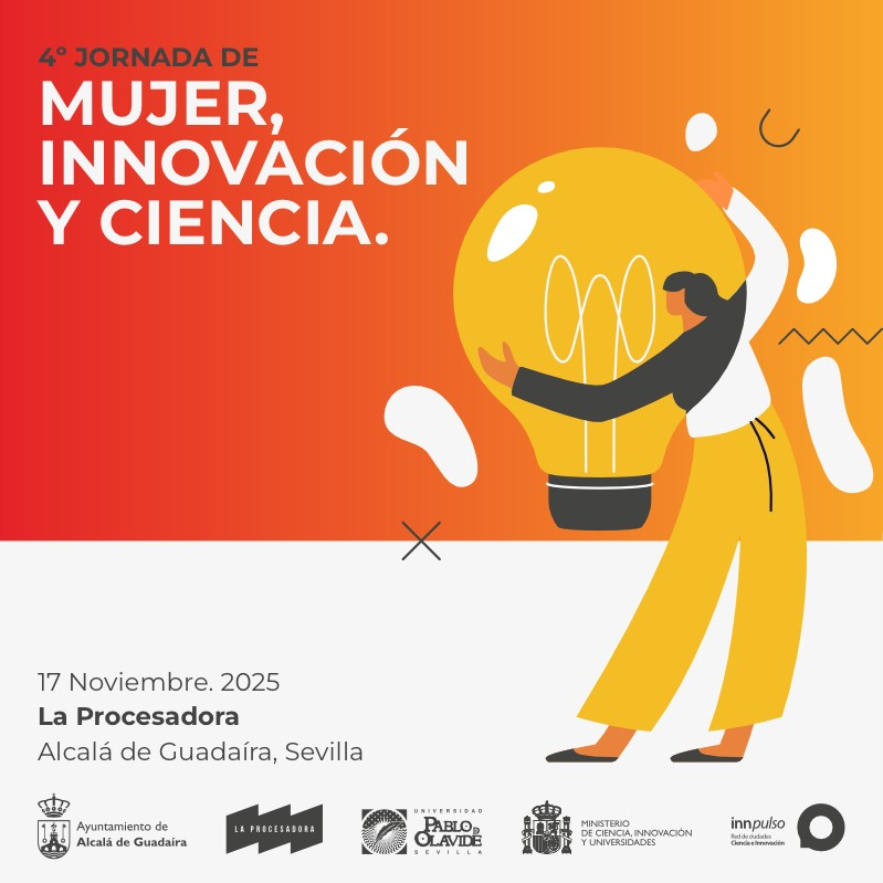 Alcalá de Guadaíra impulsa el liderazgo de mujeres en las Jornadas 'Mujer, Innovación y Ciencia 2025' que se celebrará en La Procesadora el próximo 17 de noviembre. Se trata de un encuentro nacional promovido por la Red Innpulso – Red de Ciudades de la Ciencia y la Innovación, proyecto impulsado por el Ministerio de Ciencia, Innovación y Universidades, en colaboración con el Ayuntamiento de Alcalá de Guadaíra y la Universidad Pablo de Olavide.