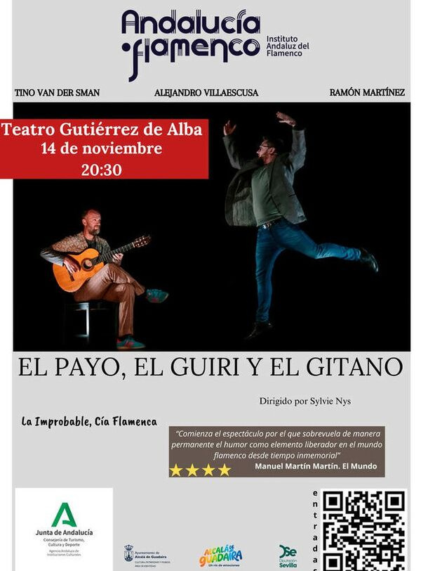 Paralelamente, hoy podremos ver sobre las tablas del teatro Gutiérrez de Alba el espectáculo flamenco ‘El Payo, el Guiri y el Gitano’. Asistiremos a un ensayo abierto en el que los protagonistas (un cantaor de Albacete, un guitarrista de Países Bajos y un bailaor de Sevilla) reflexionan, desde el humor y la ironía, sobre la inclusión/exclusión dentro del universo flamenco y el recorrido propio de cada uno.