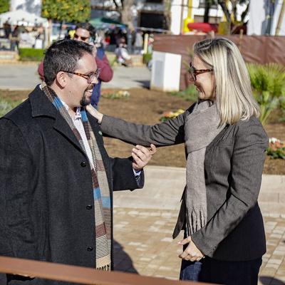 La alcaldesa, Ana Isabel Jiménez, y el subdelegado del Gobierno, Francisco Toscano Rodero, participan de la apertura del nuevo espacio urbano en pleno centro rehabilitado con los fondos europeos