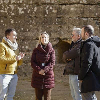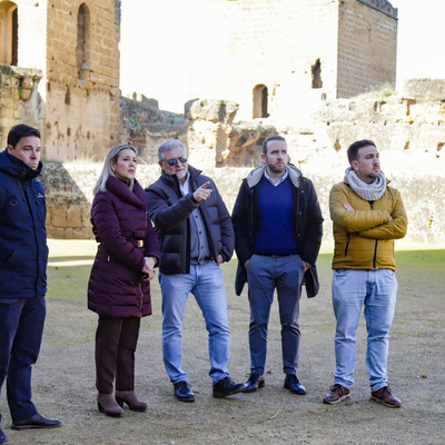 La alcaldesa de la ciudad, Ana Isabel Jiménez, acompañada del delegado de Cultura, Patrimonio y Turismo, Christopher Rivas, el delegado de Hábitat Urbano, David Delgado, y el delegado de Urbanismo y Planificación Estratégica, Jesús Mora, han comprobado el progreso de los trabajos de iluminación interior que entran en la fase final y que realzarán un recinto fortificado único en Andalucía