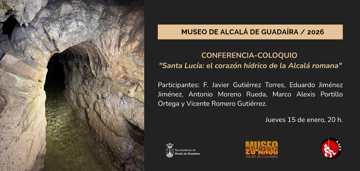 Se trata de la Conferencia-coloquio: ‘Santa Lucía: El corazón hídrico de la Alcalá romana’ que se podrá disfrutar este próximo jueves 15 de enero a las 20 horas en el Museo de la ciudad de la mano de Francisco Javier Gutiérrez Torres, Eduardo Jiménez Jiménez, Antonio Moreno Rueda, Marco Alexis Portillo Ortega y Vicente Romero Gutiérrez (de la Asociación Andaluza de Exploraciones Subterráneas).