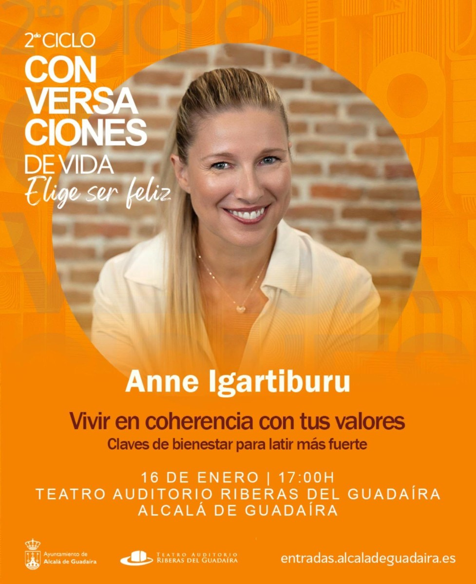 La comunicadora Anne Igartiburu llega este viernes a Alcalá de Guadaíra para participar en el 2º ciclo de conferencias `Conversaciones de Vida: elige ser feliz´ con su propuesta 'Vivir en coherencia con tus valores', dentro del ámbito del coaching que lleva años desarrollando especialmente centrada en el desarrollo humano y el autoconocimiento.