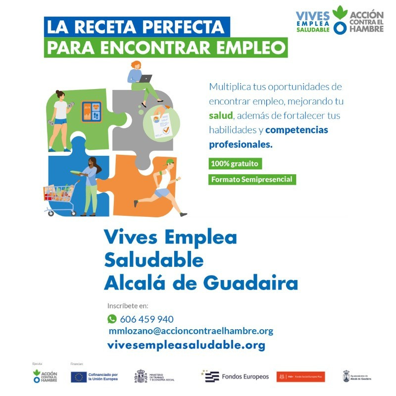 Vives Emplea Saludable está dirigido a personas desempleadas de todas las edades, aunque ha beneficiado especialmente a personas en desempleo de larga duración, mayores de 45 años y, mujeres en el 74% de los casos. Está desarrollado por el Ayuntamiento alcalareño y la Fundación Acción contra el Hambre con la cofinanciación del Fondo Social Europeo. Este programa se desarrolla en Alcalá desde el año 2017 y en sus 17 ediciones anteriores han participado 450 personas con altos índices de éxito de inserción laboral, más el componente del retorno a la formación para la obtención de mejores puestos de trabajo. De hecho, en este año 2025 se ha alcanzando el 45% de inserción durante los meses de desarrollo del programa, porcentaje sube habitualmente hasta el 60-65% en los meses posteriores a la finalización del mismo. Este mes de enero, tras las dos ediciones de 2025, se abre una nueva convocatoria a la búsqueda de personas interesadas en participar.