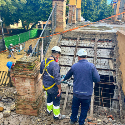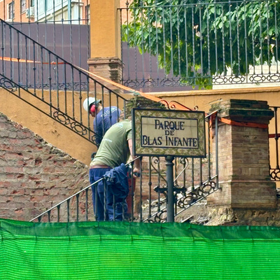 Avanzan las obras de rehabilitación del acceso principal al Parque Blas Infante que recuperarán su icónica escalinata
