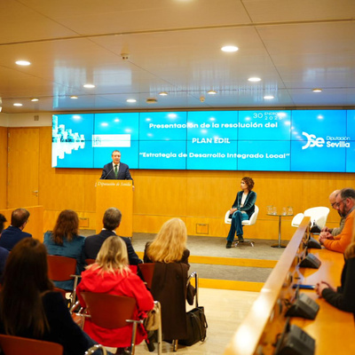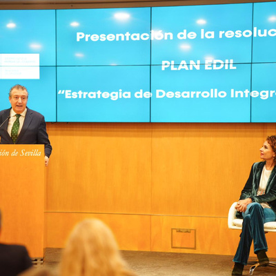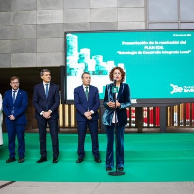 El acto de presentación de los Fondos EDIL (Estrategia de Desarrollo Integrados de la UE) se ha celebrado en la Diputación de Sevilla y ha estado presidido por el presidente de la Diputación de Sevilla, Javier Fernández, y la vicepresidenta del Gobierno y ministra de Hacienda, María Jesús Montero