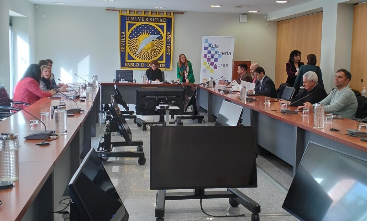 La firma del convenio se ha desarrollado en la UPO presidido por la vicerrectora de Cultura y Políticas Sociales, Laura Gómez Ruiz, con la presencia de la directora académica del Aula Abierta de Mayores, Manuela Domínguez Orta, delegados y coordinadores locales de otros ocho ayuntamientos (Aznalcóllar, Bormujos, Castilleja de la Cuesta, Gerena, Gines, Herrera, Lebrija y Pilas), así como como miembros del equipo de vicerrectorado de Cultura y Políticas Sociales.