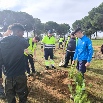 En la jornada, además de Rocío Camacho por la Fundación Plant-for-the-Planet España, Luisa Campos como delegada de Monumento Natural, Medio Ambiente y Sostenibilidad, han participado en la plantación el delegado del Área de Identidad, Christopher Rivas; la delegada de Empleo, Paula Fuster, que ha señalado la importancia de que el alumnado participe en actuaciones reales vinculadas a la mejora ambiental del municipio, integrando formación práctica y empleo verde en proyectos de transformación del entorno.