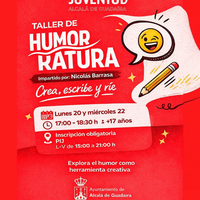 A estas reuniones se le sumará el taller ‘Humoratura’ para mayores de 17 años el lunes 20 y el miércoles 15. Esta iniciativa tiene el objetivo de utilizar la vía del humor como herramienta fundamental para el proceso creativo y la vida en general, y se aprovecha la experiencia para incluir la lucha contra los prejuicios. De la mano del profesional escritor, dramaturgo y comediante, se propone ahondar en conocimientos teórico-prácticos y fórmulas divertidas para explorar imágenes, textos, monólogos, historietas o material visual y el humor desde un punto de vista creativo y diferente.