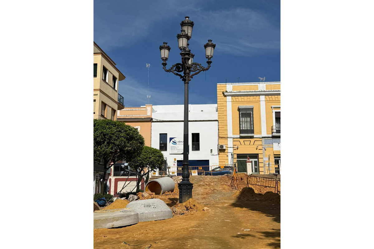 Una vez finalicen las obras de remodelación de la plaza, la farola volverá a lucir en la parte central, conservando su aspecto tradicional en un espacio urbano que forma parte del corazón de la ciudad