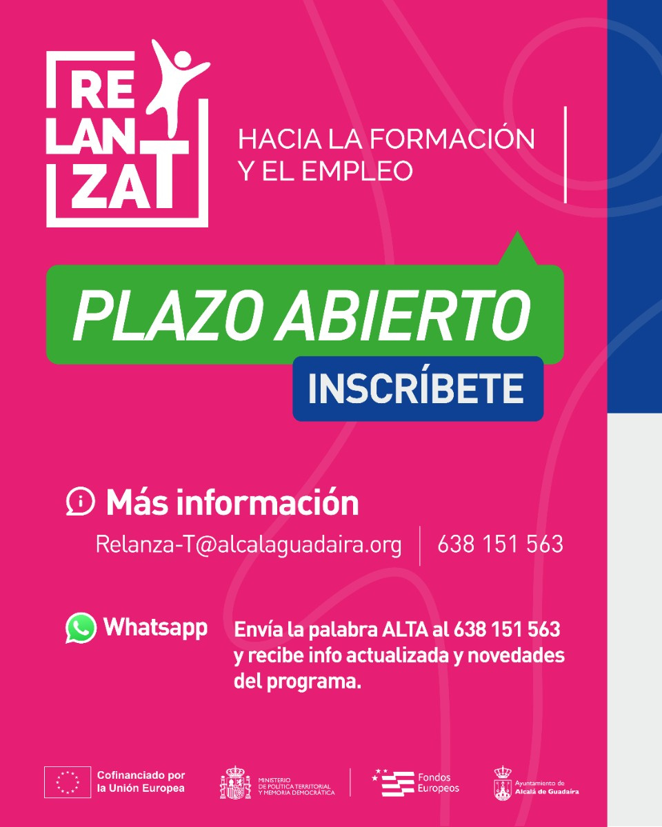 Toda la información sobre el proyecto y el acceso al formulario de inscripción están disponibles en la web oficial: https://relanza-t.alcaladeguadaira.es/